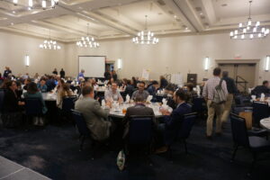 When those CLEs wrapped up, there was a brief break for attendees to chat with sponsors and grab cookies or brownies before the final CLE of the day: a plenary sessio