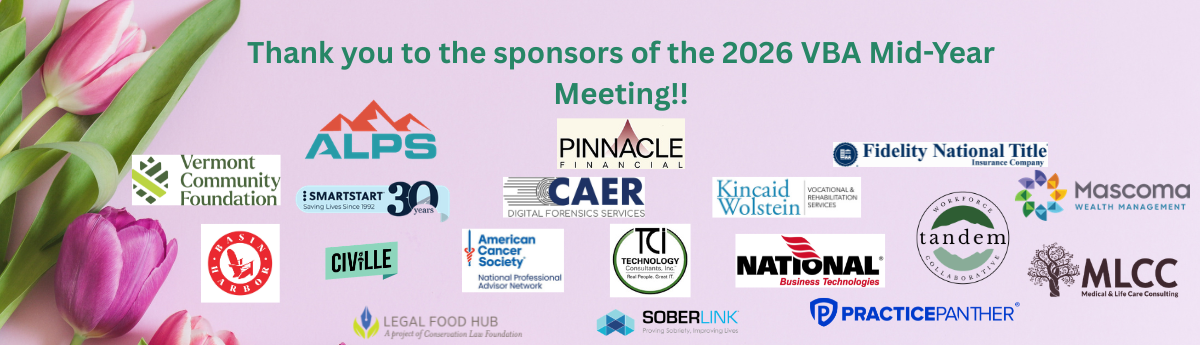 The Vermont Bar Association promotes the highest standards of skill, ethics and professionalism within an inclusive legal profession; fosters understanding and respect for the rule of law; supports equal access to a fair and effective system of justice; and provides valuable resources to its members.