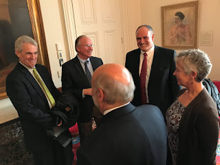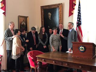 The ceremony was attended by many judges and court staff as well as family, colleagues and friends of both Mann and Fenster. Beth Mann’s parents, husband and two sons attended, all appearing emotional, as were we all, during her beautiful speech. Dave Fenster’s parents, step-parents, wife and daughter and son were also all in attendance and were thanked profusely. Some levity was added when Dave’s wife’s shoe became lodged in the ventilation grate, which she handled with grace, and when the Governor’s pen (from “the bottom of the box” due to the end of his tenure) failed to operate properly, and several replacements were offered.