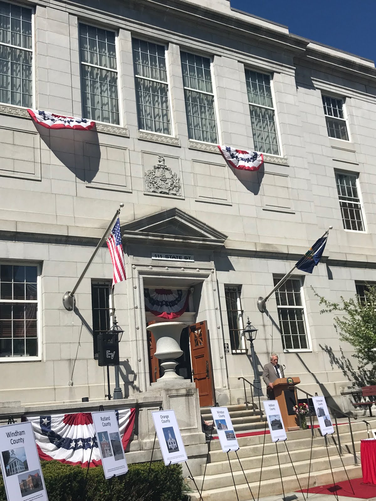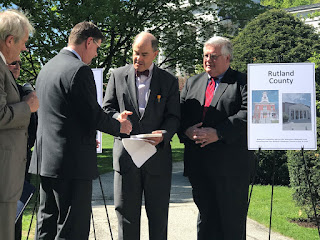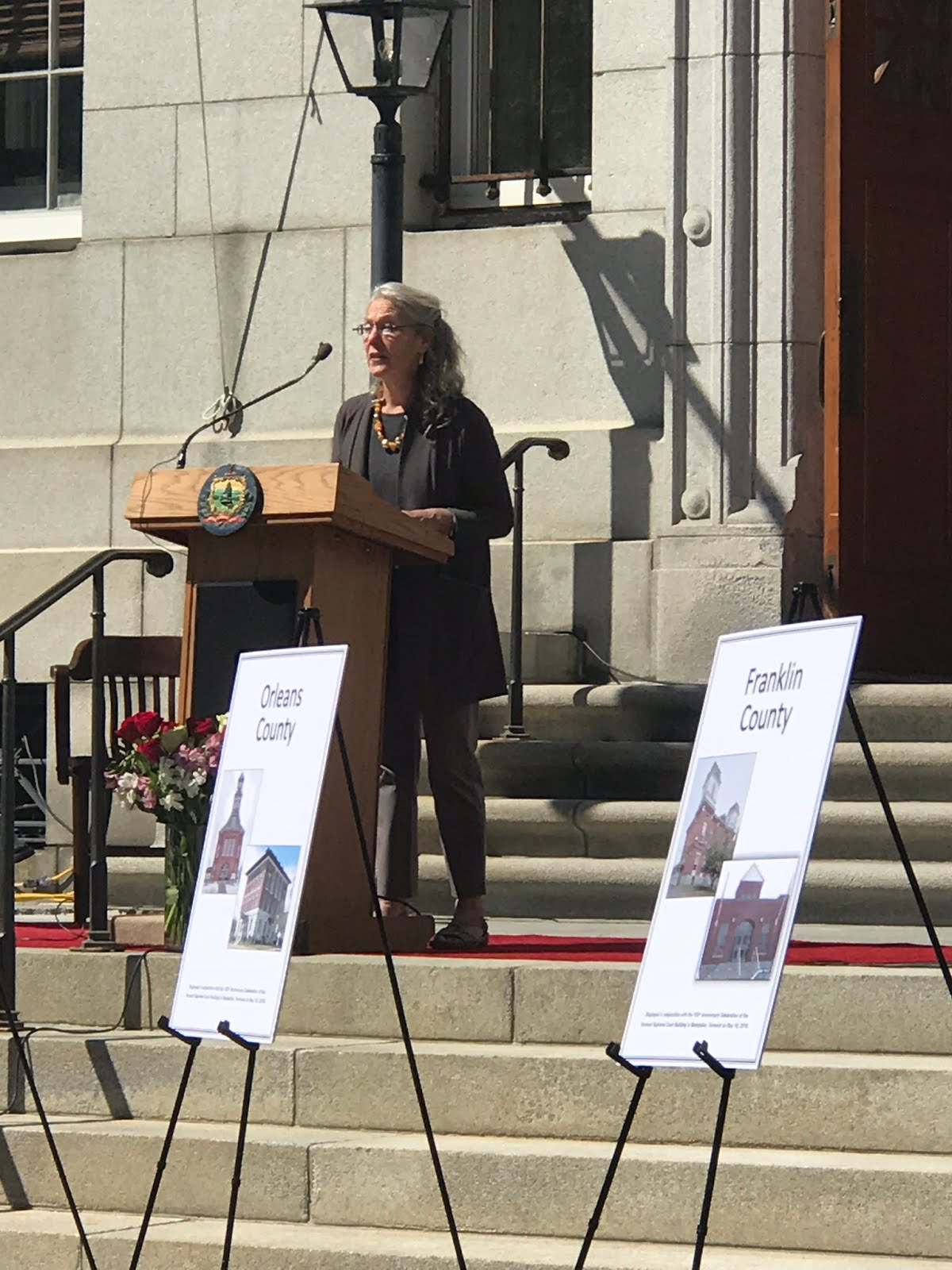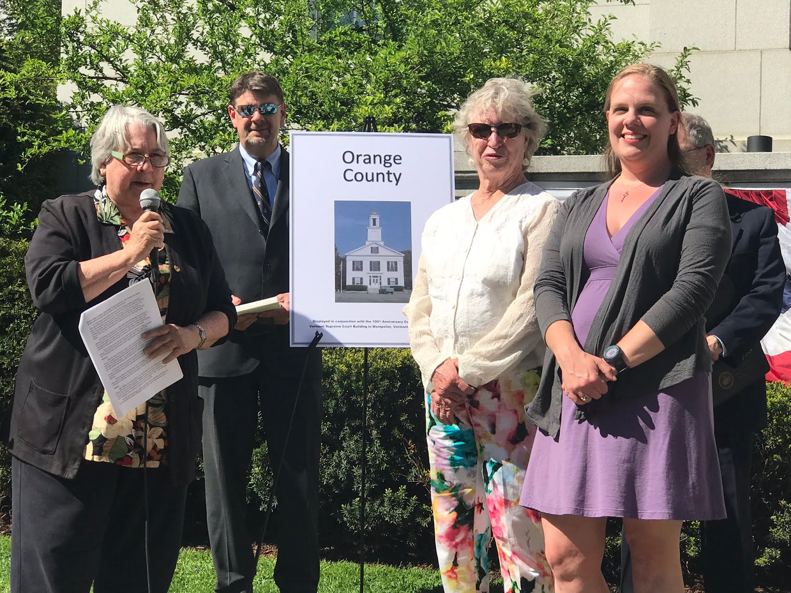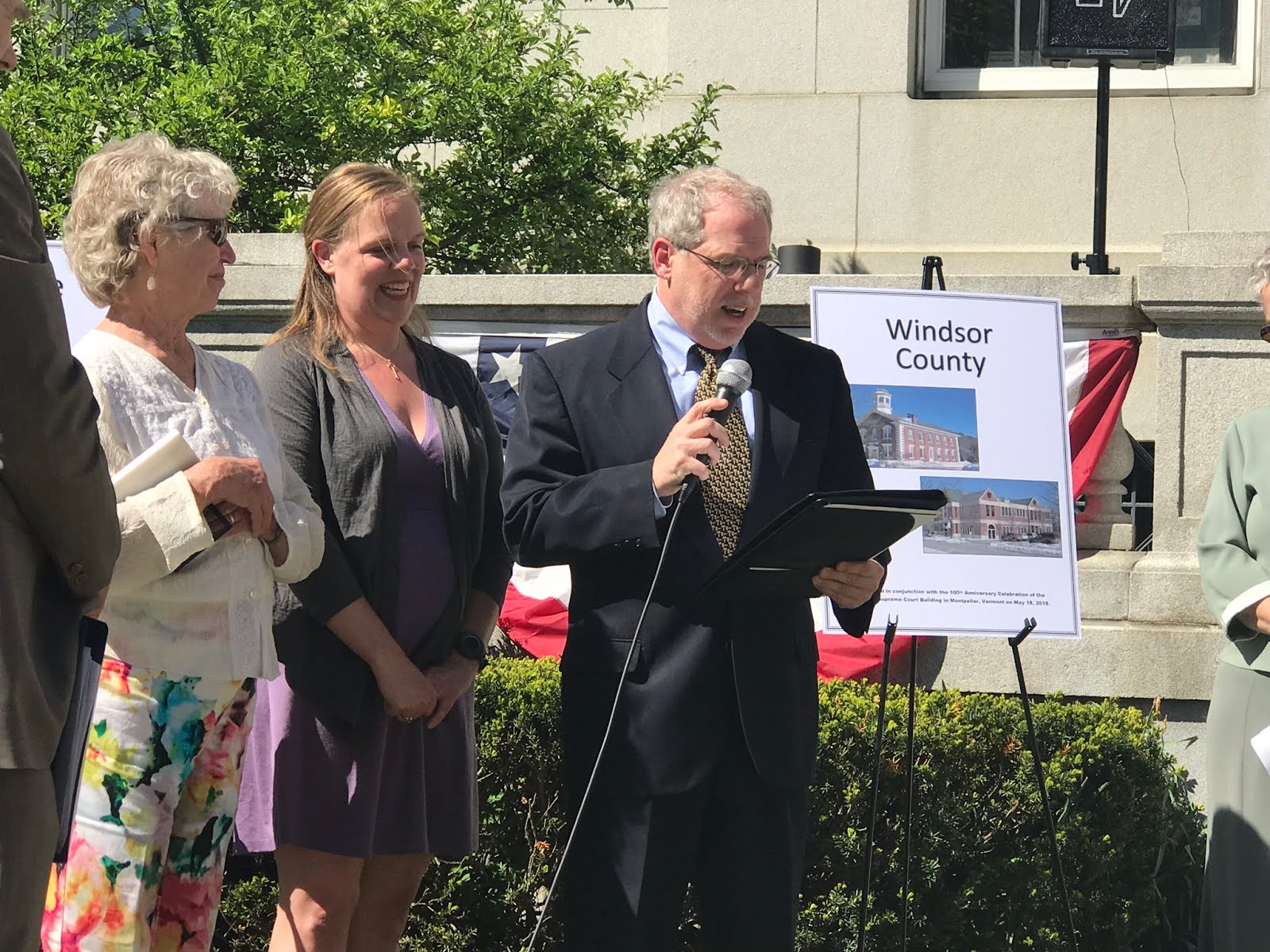 Before turning the ceremony over to the individual counties, Justice Reiber pointed out the plaque just next to the building commemorating the landmark civil union decision. He also read the remarks sent by Senators Leahy and Sanders, sending their warmest congratulations on 100 years of furthering justice. They remarked how lawyers protect equality among citizens and sent best wishes for the next 100 years of fostering respect for the rule of law.