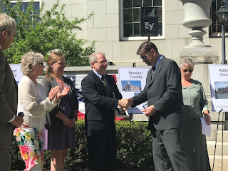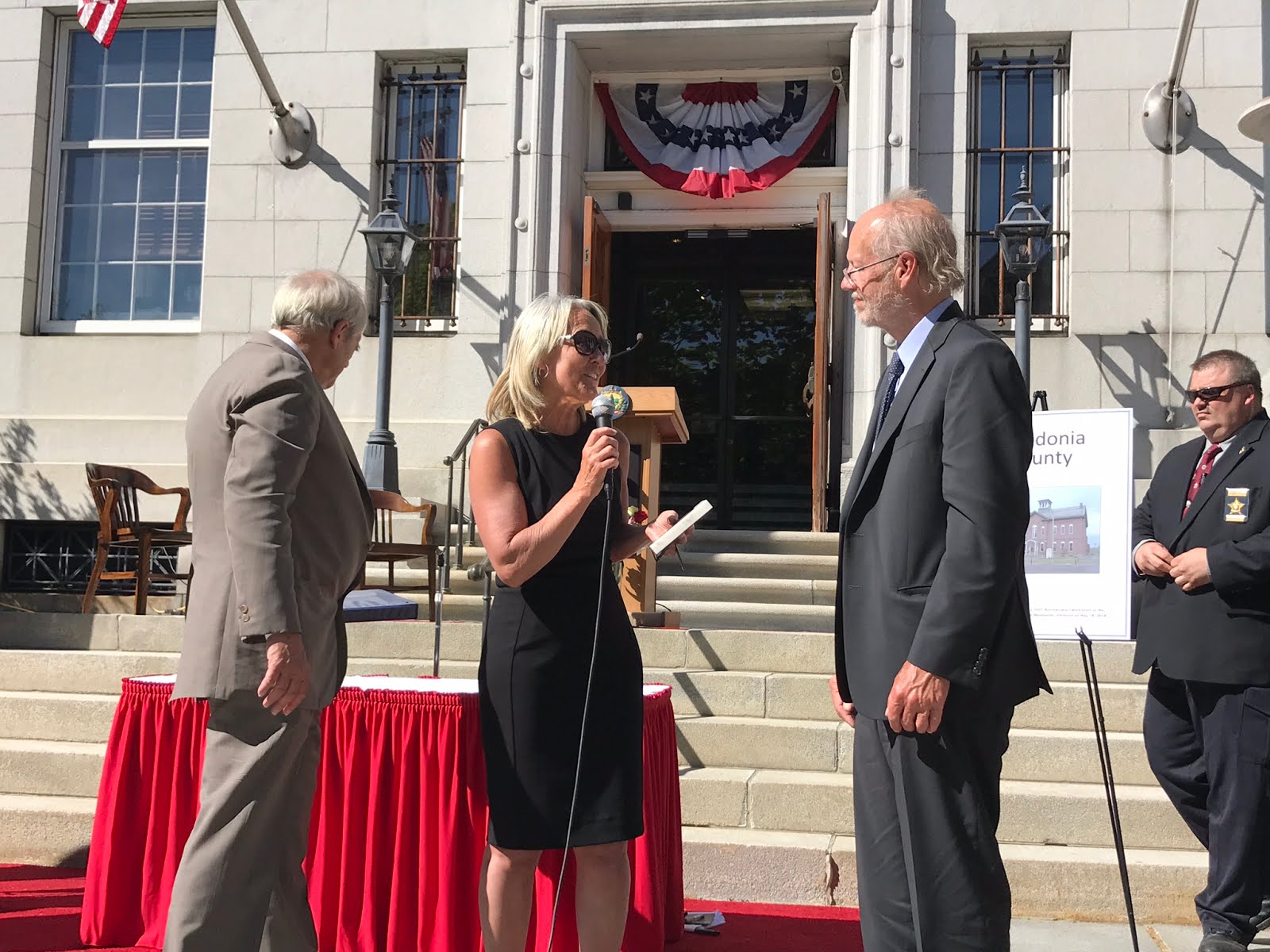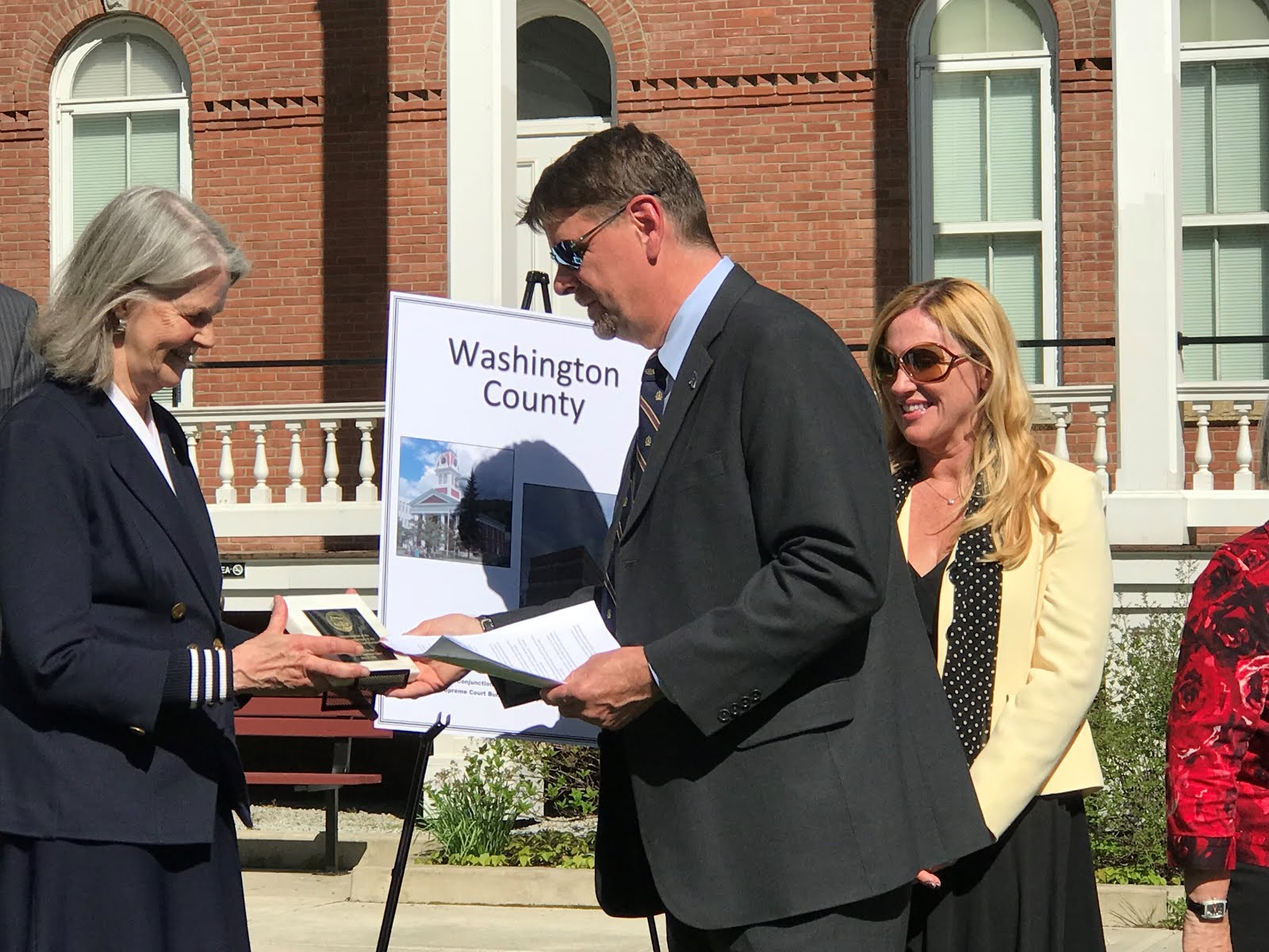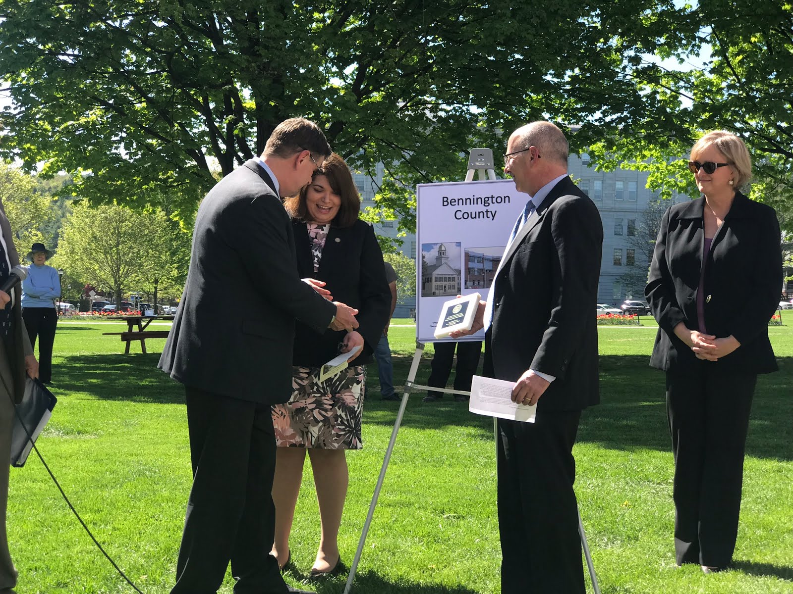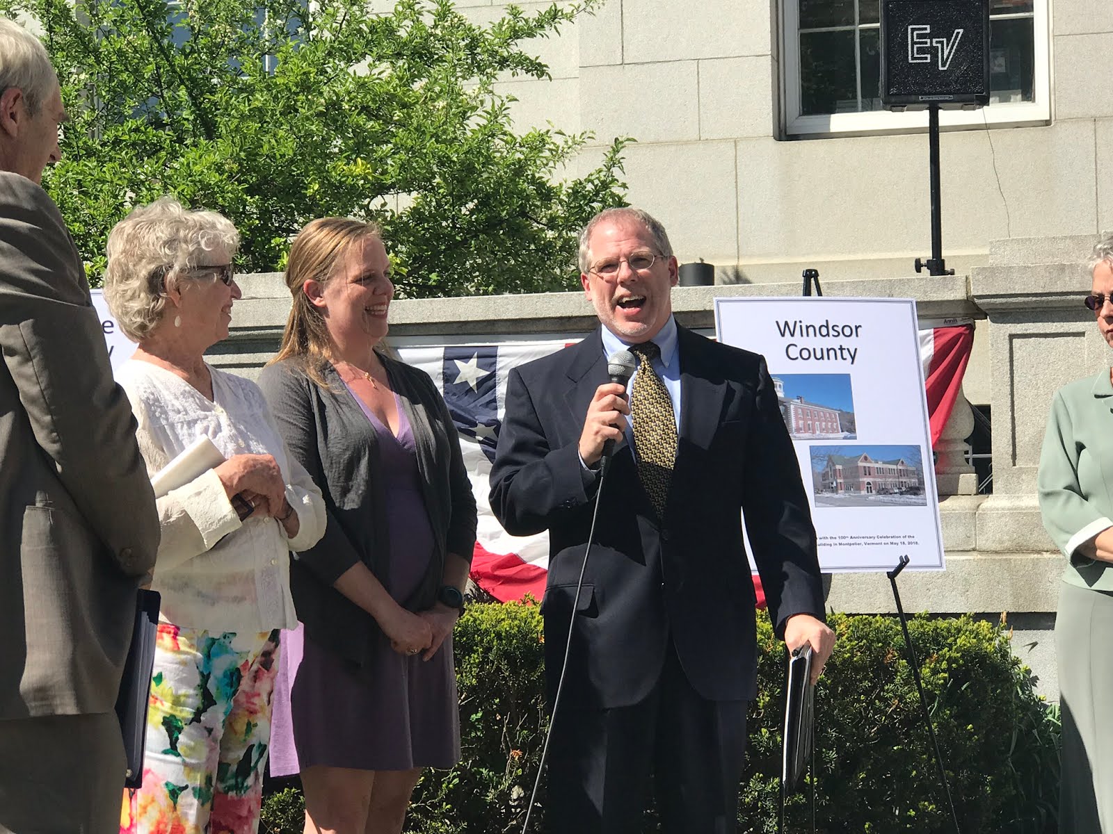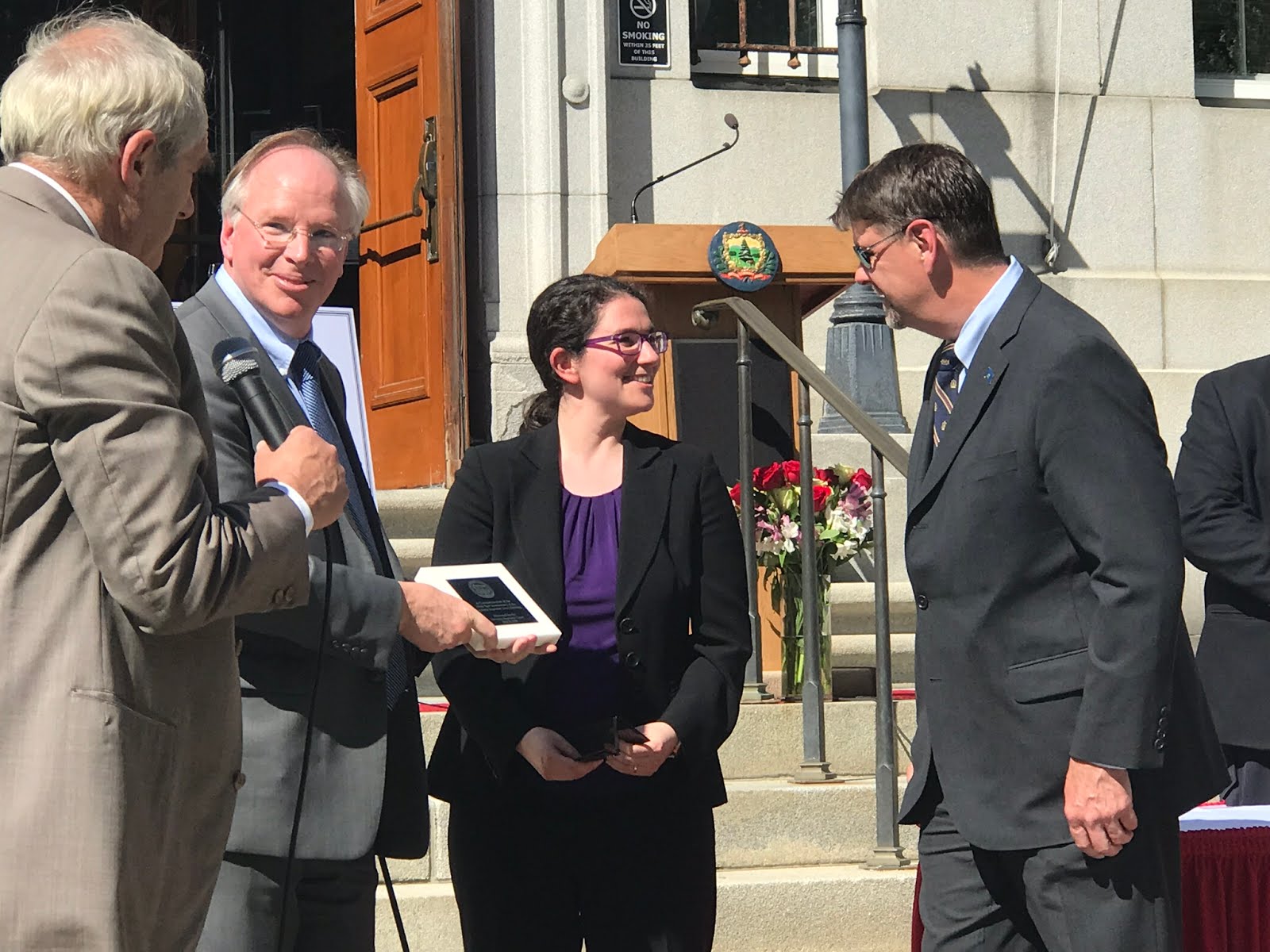 Before turning the ceremony over to the individual counties, Justice Reiber pointed out the plaque just next to the building commemorating the landmark civil union decision. He also read the remarks sent by Senators Leahy and Sanders, sending their warmest congratulations on 100 years of furthering justice. They remarked how lawyers protect equality among citizens and sent best wishes for the next 100 years of fostering respect for the rule of law.