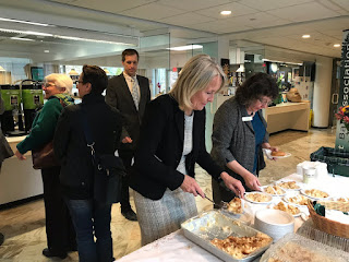 The VBA was once again happy to host a legislators coffee in the Statehouse cafeteria last week. Hosting included coffee, donuts, pocket constitutions and of course, the undoubtedly world-famous (or at least Vermont-famous) apple bread pudding made by our Executive Director Teri Corsones. Six trays of the apple-rich treat were happily and gratefully devoured by legislators, pages, officers, VBA members and passersby at the nearly 2-hour event.