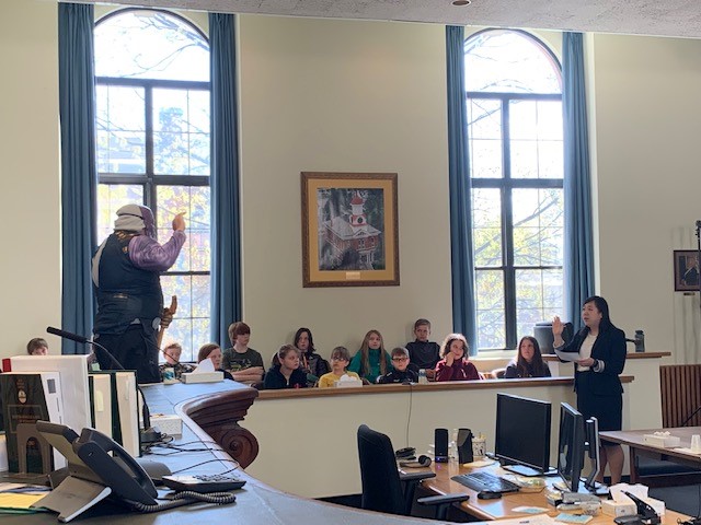 The Rutland County Bar Association continued its 30+ year annual tradition of a Law Day Mock Trial hosting over 200 area 5th graders from seven different schools on May 8, 2019. The program featured a morning and an afternoon performance at the Rutland County Courthouse. The Avengers-themed case of “Thanos v. Shuri of Wakanda” featured Thanos suing Shuri for damages suffered after she allegedly damaged Thanos’ infinity gauntlet.