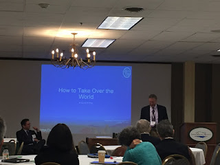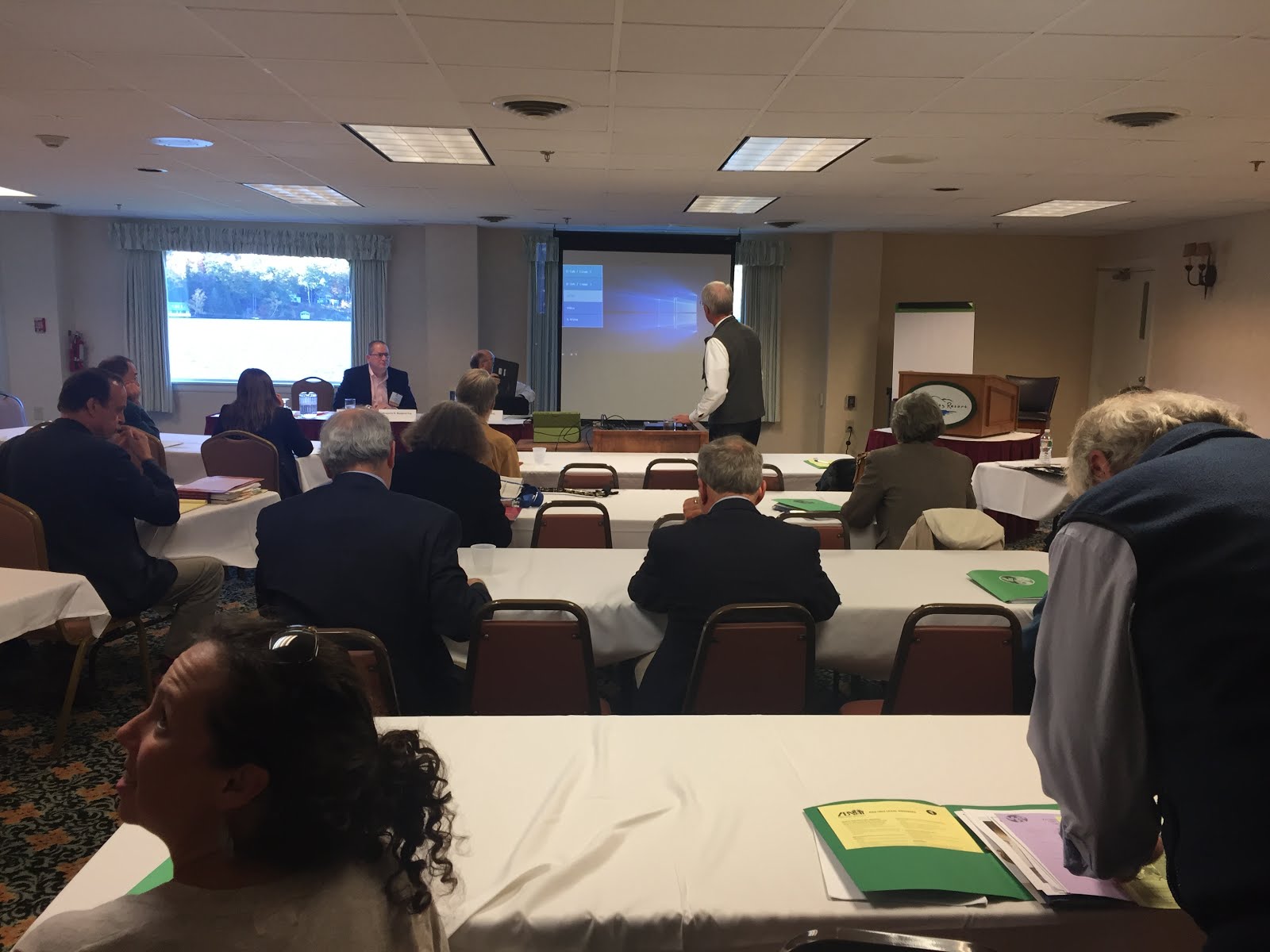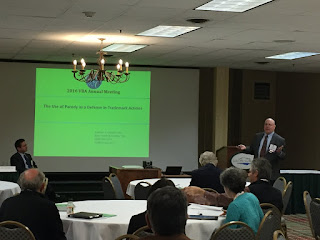 Tom Moody engaging his audience at the Business Law review as Tristram Coffin awaits his portion of the presentation.