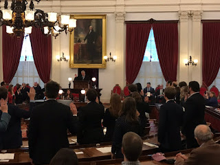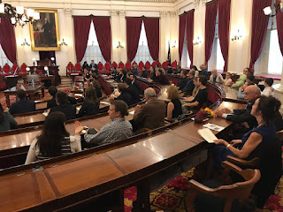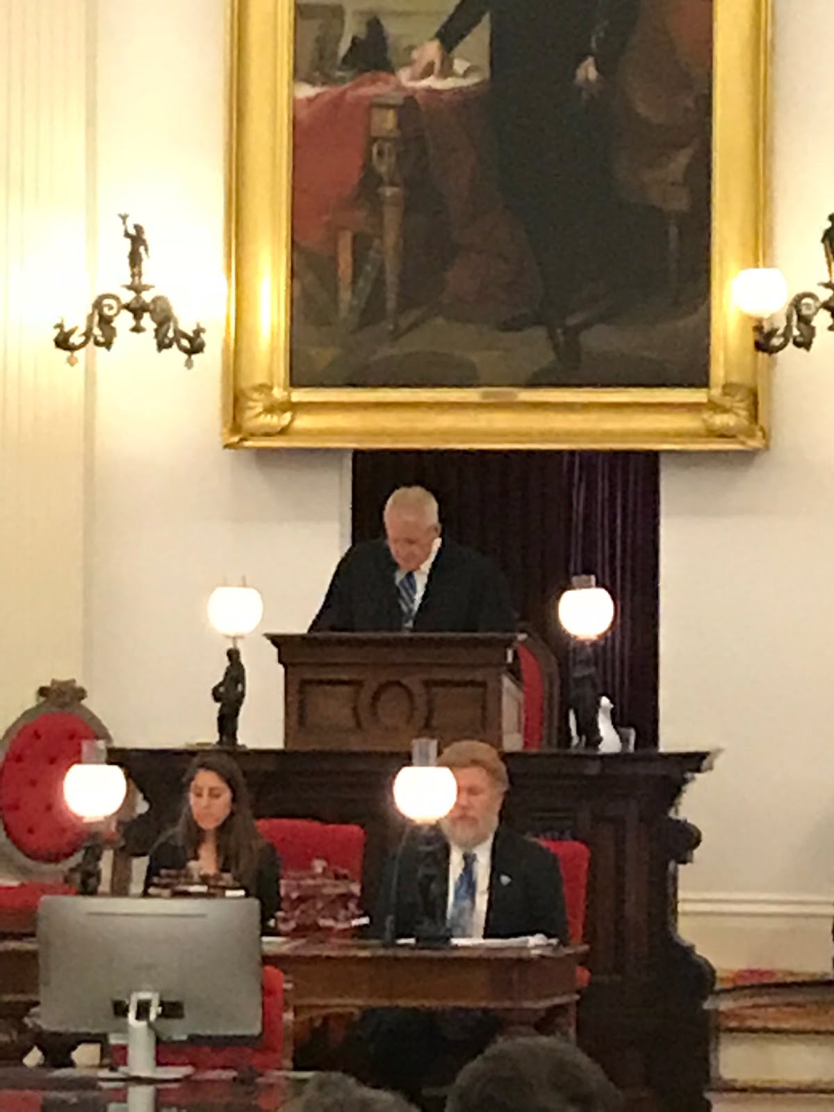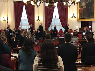 Chief Justice Reiber swore in 52 new admittees (admitted within the last year) before the Vermont Supreme Court, the Board of Bar Examiners and guests in the House Chamber at the Statehouse yesterday. The Chief gave an inspiring speech encouraging the new lawyers to use their gifts and talents to not only uphold the Constitution and the Rule of Law but to contribute to the public good as public citizens. He encouraged local community involvement as well as a focus on individual wellness. As a parting note, the Chief recommended that the new admittees save a bottom drawer in their desks for thank you notes from clients which will serve as future inspiration and a reminder of the reason they chose law in the first place — to help people.