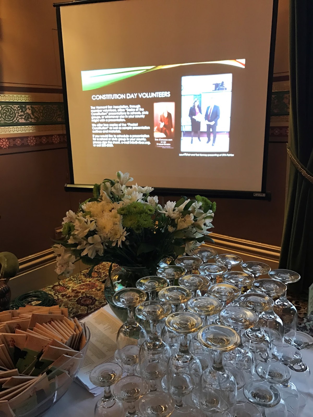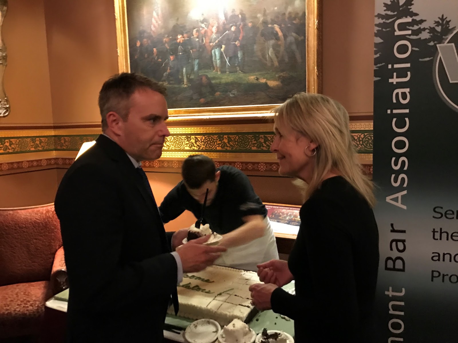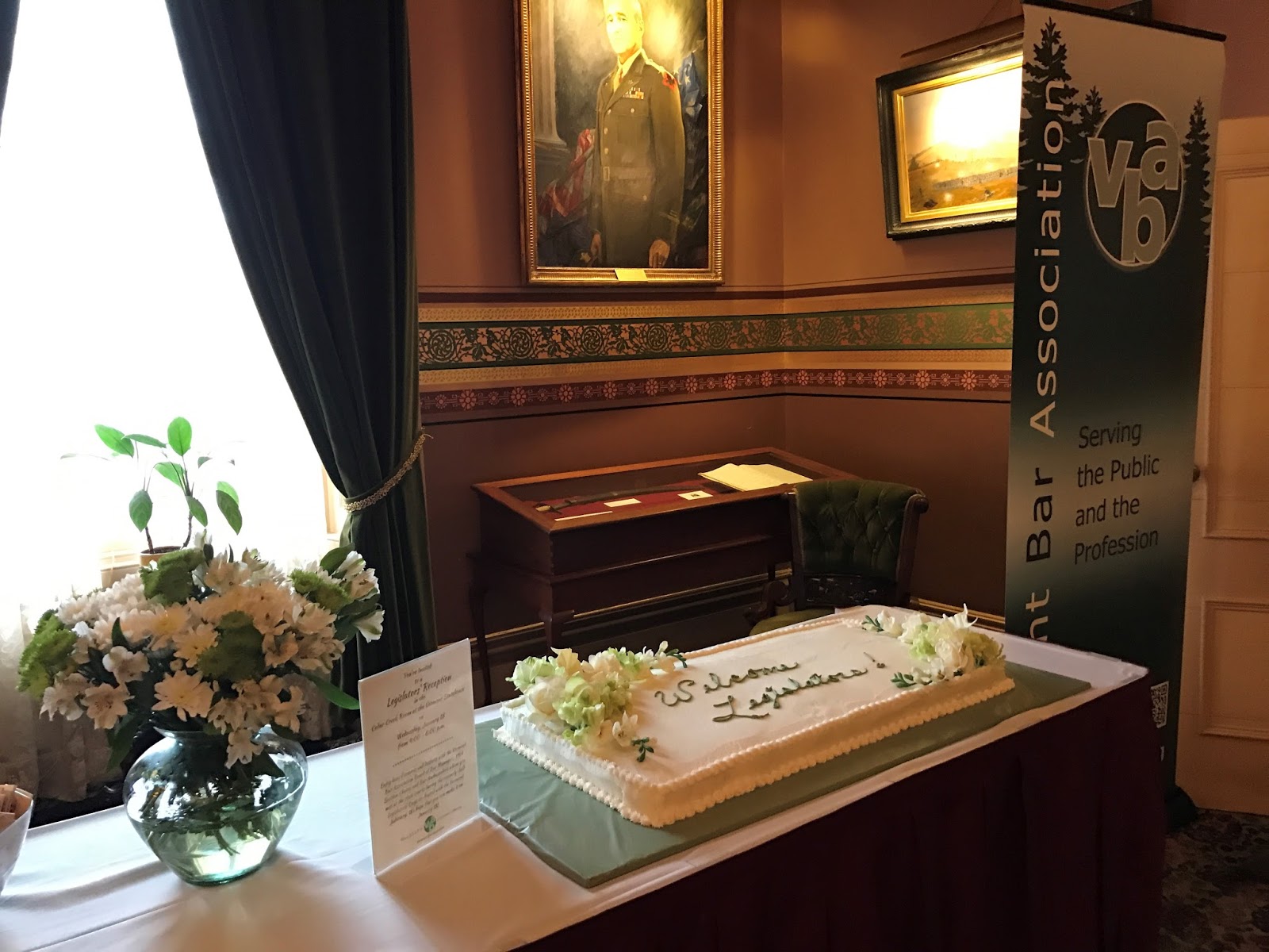 We at the VBA strive to be a valuable resource to our representatives and their constituents. As a backdrop to the event, in one corner there was a slideshow loop of pictures from the Legislators’ Days held in each County, and information about our resources such as our VBA Section Chairs, the Bar Ambassadors, our lawyer referral service and legal assistance business cards and our public education initiatives, such as our “Basics of the US Constitution” presentations. If legislators have any question about proposed legislation, they can take comfort in knowing that the VBA Section Chairs are there to assist with understanding or to reach out to other members in that substantive area of law for issue spotting, testimony and discussion. The Bar Ambassadors in each county are also a great resource. Most importantly, we got an opportunity to interact with our legislators at a lively social event!